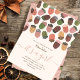 Beautiful fall-themed baby shower party invitation templates ready for you to customise! Falling from the upper edge of this design, there are hand-painted acorns in beautiful shades of pink, brown and green decorated with simple decorative design. Feel free to contact me with any design-related questions!. Original artwork by Caroline Bonne Müller
