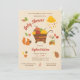 This cute Baby Shower design features a Fall Season scene typical of this time of the year. The illustration is perfect for a Little Pumpkin theme. It features Autumn leaves, fruits and vegetables, along with Fall critters such as a squirrel and a hedgehog. The leaves add a playful tone. At the centre of the design, there’s a wagon with pumpkins and apples. A cute, happy cloud reinforces the the shower or sprinkle theme. The colour palette is cosy, ideal for this time of the year.