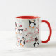 Drink your morning coffee in this adorable Christmas penguin themed mug! This black and white and red penguin mug features a repeating pattern of cute penguins wearing top hats, red bow ties, and red bows, as well as candy canes and snowflakes. This is a great winter coffee mug and makes for a wonderful gift for penguin fans or lovers. Adorable and modern penguin mug makes a great penguin gift for kids, co workers, family members, and friends!