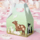 Celebrate a baby shower, baptism, christening or naming ceremony in style with this cute farm animals friends gable party favor box. Featuring a donkey, a goose, a hen and her chicks, a baby goat, a piglet, a rabbit, two lambs, a border collie, a black cat and a cow and her calf, the box can be personalized however you like.