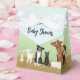 Celebrate a baby shower, baptism, christening or naming ceremony in style with this cute farm animals friends tent party favor box. Featuring a donkey, a goose, a hen and her chicks, a baby goat, a piglet, a rabbit, two lambs, a border collie, a black cat and a cow and her calf, the box can be personalized however you like.