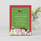 This 5x7 cute farm birthday party invite has a tractor in the background with some farm animals including a pig, cow, and a sheep. You can easily customise your party information in the middle. Graphics by BabyStar Design at MyGrafico.com