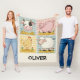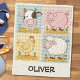 This playful blanket features a quartet of classic farm animals—a cow, a pig, a chicken, and a sheep—each set against a colourful, textured gingham background.