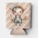 Cute Farmcore Pig in Overalls with Flowers Can Cooler