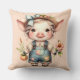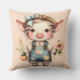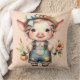 Cute Farmcore Pig in Overalls with Flowers Cushion