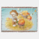 Cute Farmer Dog with Pumpkin Throw Blanket