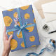 Cute Fat Orange Cat Pattern Blue Wrapping Paper