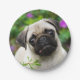Cute Fawn Pug Puppy Dog Portrait, Happy Party Paper Plate
