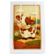 This charming design features a handcrafted-style felt cow with soft stitched details, set in a peaceful countryside scene. Surrounded by rolling hills, flowers, a wooden fence, fluffy clouds, and a rising sun, the artwork has a warm, cosy aesthetic reminiscent of handmade fabric appliqué. The gentle textures and earthy tones create a playful yet comforting rural theme, perfect for gifting occasions that call for a touch of sweetness and rustic charm.
