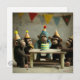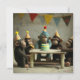 This birthday card features five felted monkeys celebrating with cake and party hats.