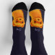 Cute ferret personalized socks with a digital illustration in yellow, orange and purple depicting one of these adorable fluffy animals smiling, decorative elements, flowers and stars around it. It will make a great gift for a ferret mom and a ferret lover.