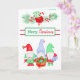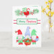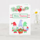 Cute hand drawn watercolor festive whimsical gnomes Merry Christmas card.