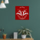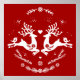 modern outtake of Scandinavian Christmas folk art with birds, branches, berries, hearts and two jumping reindeer in white and red tones, for modern holiday season Christmas decor