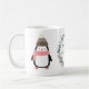 This festive personalised children's mug features a festive wreath and two festive penguins, You can personalise this mug with any name, text or phrase you wish, you can also change the font and the colour of the text. © Julie McIver