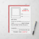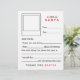 Fill in the blank Letter to Santa stationery. There is a blank square box where your child can draw or doodle what they want for Santa. There are fill in the blank sentences, which he or she can fill in by hand. The back is a red and white design like a candy cane.