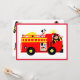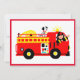 Fire truck children’s party invitation. Replace placeholder text with your info. Add and delete as necessary. You can also change typeface and colour of the text