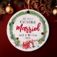 Cute first Christmas married green wreath Ceramic Ornament. A beautiful keepsake ornament. Perfect gift for the newlyweds or your new bride or groom. Beautiful yet Inexpensive Gift for couples that you can easily personalise with name and date.