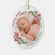Celebrate your baby's first Christmas with a personalised ornament that you'll cherish for years to come! Our "My First Christmas" ornament features a delightful watercolor drawing of a winterberry twig in a beautiful rose pink and green colour scheme. With space for a photo of your little one, this ornament is the perfect addition to your holiday decor.