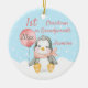 Celebrate your first Christmas as grandparents with this cute baby penguin holiday ornament which features a cartoon baby girl penguin holding a pink balloon sitting on a pile of snow with a blue snowy background . Customize this magical festive holiday ornament by amending grandparents to Grandma, Granddad, Auntie, Aunt or Uncle then personalize with the baby's name and year of birth. Great to give as a gift to 1st time grandparents as a keepsake.