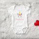 Cute baby's bodysuit for first Valentines Day with unicorn face, script and modern typography.
