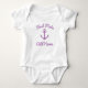 Cute first mate pink nautical anchor baby bodysuit. Personalised kid's jumpsuit. Nautical children's clothing with ship anchor and custom name or monogram initial letters. Maritime 1st Birthday party gift idea for new sailor son or daughter. Make your own for skipper granddaughter, daughter, niece, friends etc. Script typography with boat anchor logo design. Customisable clothes and outfits for sailing / boating on the lake or ocean. Also great for cruise or sailboat trips. Suitable for little boys and girls. Colours can be changed.