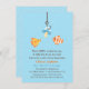 A cute and amusing fishing baby shower invitation that is going to put a smile on your guests faces. It comes with a fishing line that has a baby pacifier on the hook as bait for the fishes which includes a clown fish. On the reverse page is a spiral pattern to simulate the water waves. Personalise with your baby shower details.