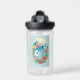 The bottle looks even better in real life. The ice cubes I put in lasts all day! I have my bottle with me all the time. It's summer and having something cold to drink feels amazing. With this bottle I always have something super cold. I have only tried the hot drink once and it lasted a long time as well. The color blue is a navy blue and the white printed on it is vibrant. It printed perfectly. I love my personalized smile water bottle.