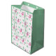 Cute Flamingo Tropical Flowers Leaf Pattern Green Medium Gift Bag