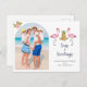 Cute watercolor Flamingos and pineapple Tropical beach coastal holiday postcard with your favourite family photo.