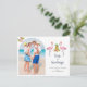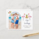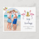 Cute watercolor Flamingos and pineapple Tropical beach coastal holiday postcard with your favourite family photo.