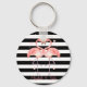 Cute Flamingos In Love ,Black White Stripes Key Ring