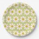 Cute Floral Daisy Pattern Green Paper Plate