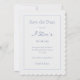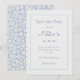 Chic, fresh and youthful with a playful tone. This Save the Date card features a set of trendy and modern fonts, against a off-white background. The back of the card wears a playful floral blue and white pattern. Cheeky and fun. Personalise to make it your won.