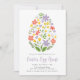 Cute Easter egg hunt invitations featuring an illustration of purple, yellow, red, and orange spring flowers and greenery arranged in the shape of an egg. Personalize the floral Easter invitations with your Easter egg hunt details shown below.
