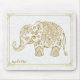 Cute Floral Elephant & Frame Gold Glitter On White Mouse Pad