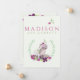 Our cute photo birth announcement card introduces your beautiful baby girl with her name on the front with pink and purple florals and a cute hippo with a radish. Customise the back with a newborn photo and script text to feature your baby's important birth information, and parent names. The photo is framed by a soft pastel purple frame topped with purple and pink flowers.