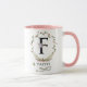 Give this elegant Monogrammed coffee mug with letter "F" with style and blush watercolor flowers and greenery to someone special or treat yourself drinking a delicious coffee or tea with a design that brightens your day. Personalise the coffee mug by adding your name or custom text.