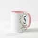Give this elegant Monogrammed coffee mug with letter "S" with style and blush watercolor flowers and greenery to someone special or treat yourself drinking a delicious coffee or tea with a design that brightens your day. Personalise the coffee mug by adding your name or custom text.