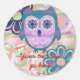 Cute Floral Owl Classic Round Sticker