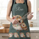 Cute Floral Owl with Bow Apron