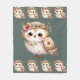 Cute Floral Owl with Bow Fleece Blanket