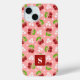 Cute Floral Polka Dot Cherries Pink Monogram Case-Mate iPhone Case