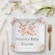 Beautiful baby shower plate features a starfish with coral pink floral arrangements. Perfect for a baby shower. The words can be changed to suit your own details or requirements