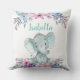 Cute Floral Watercolor Baby Elephant Throw Pillow