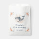 Beautiful birthday party favour bag features a whale with coral pink floral arrangements. Perfect for a birthday party. The words can be changed to suit your own details or requirements