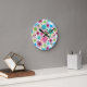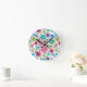 Cute flower owl background pattern round clock