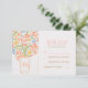 cute and modern peach mason jar wedding RSVP card with coral flowers, blossoms, leaves and love hearts.