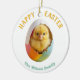 This cute Easter ornament features an adorable chick hatching from a colourful egg. The multicolored egg and fluffy chick bring a splash of colour to your Spring greetings. The ornament has the greeting 'Happy Easter' at the top, and custom text for your name below the egg and chick picture. On the back (double sided options only) there is further text for your own individual message.