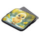 Cute fluffy chick with big eyes standing on a rock laptop sleeve
