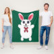 Cute Fluffy White Bunny Rabbit with Red Bow - Chri Fleece Blanket